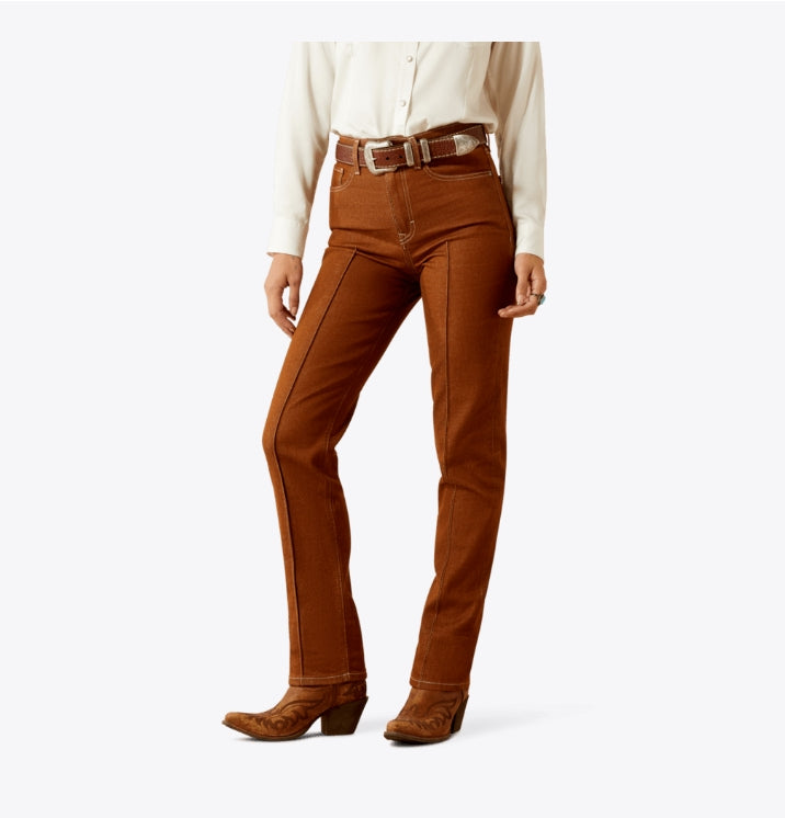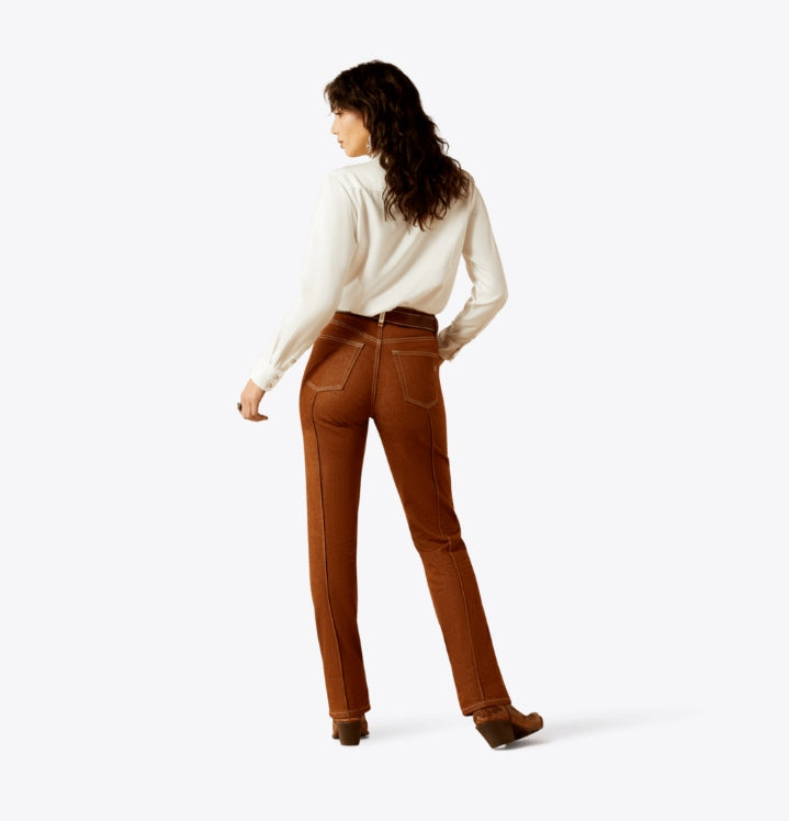 WMS Ultra High Rise Relaxed Straight Leg Jean In Pecan Brown