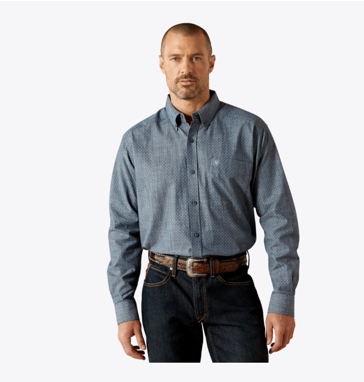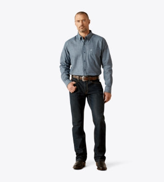 Mens Trent Long Sleeve Shirt in Chambray Blue