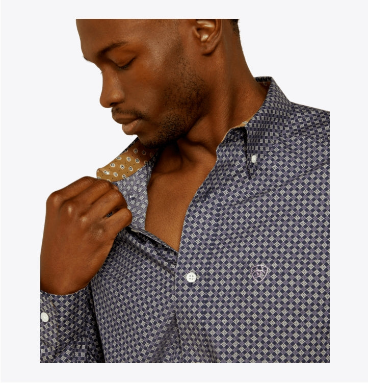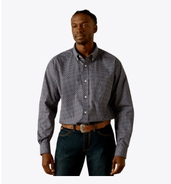 Mens Wrinkle Free Dale Long Sleeve Shirt in Navy