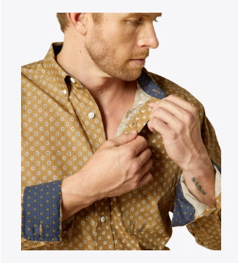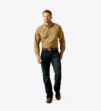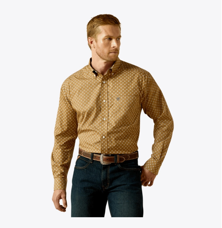 Mens Wrinkle Free Darryl Long Sleeve Shirt in Khaki