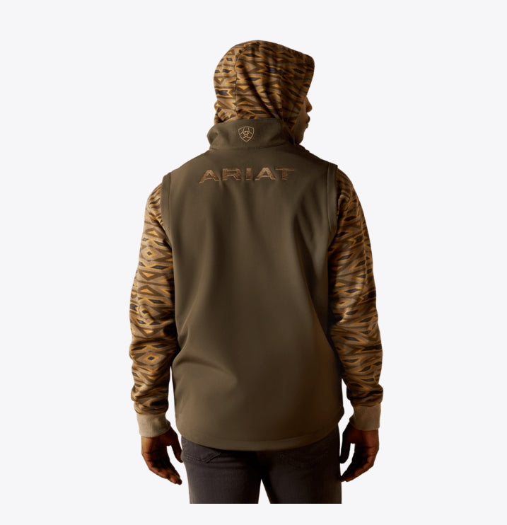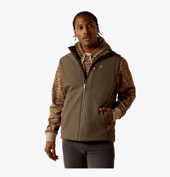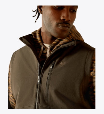 MENS LOGO SOFTSHELL VEST IN DARK GREEN