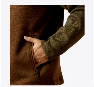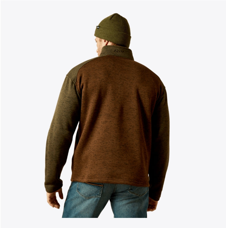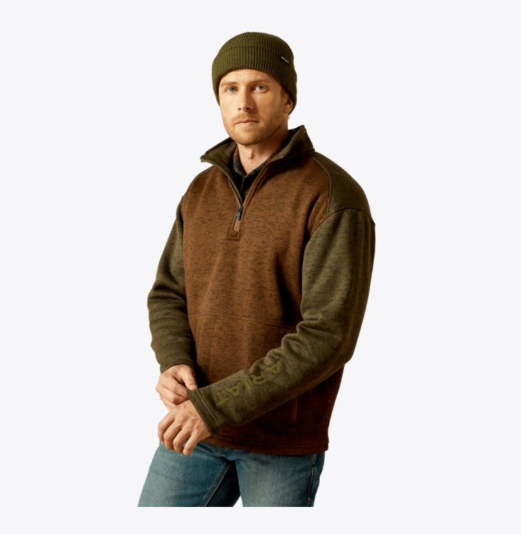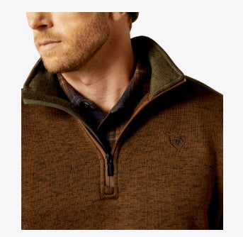 MENS CALDWELL LOGO 1/4 ZIP SWEATER IN CARAFE/EARTH GREEN