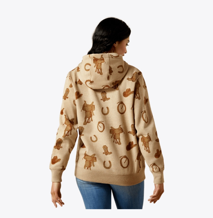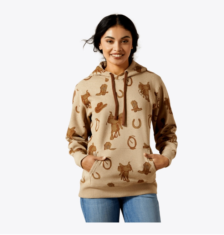WOMENS ARIAT LOGO 2.0 PRINTED HOODIE IN SAVANNAH TAN HEATHER
