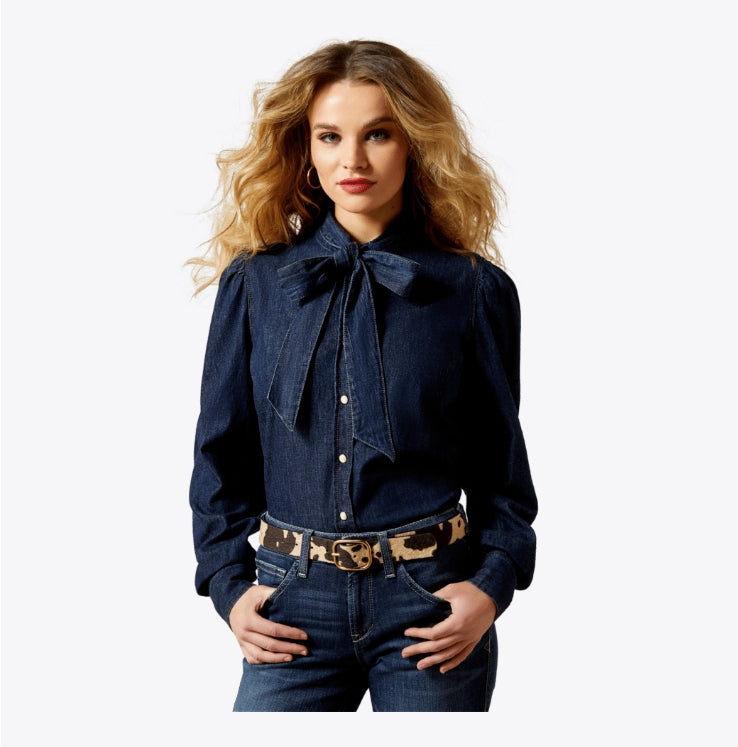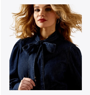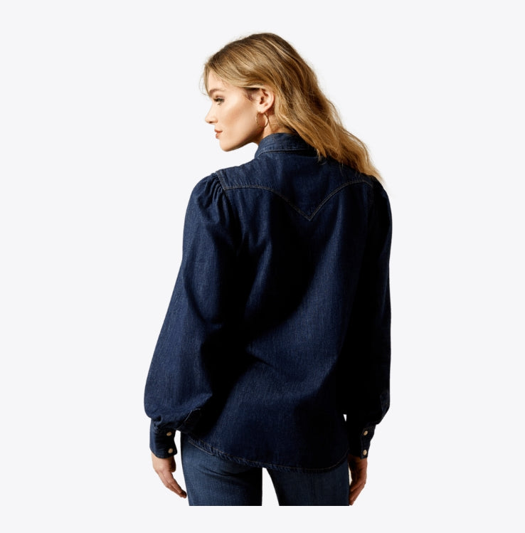 Women's Puff Sleeve Denim Snap Shirt in Storm Dark