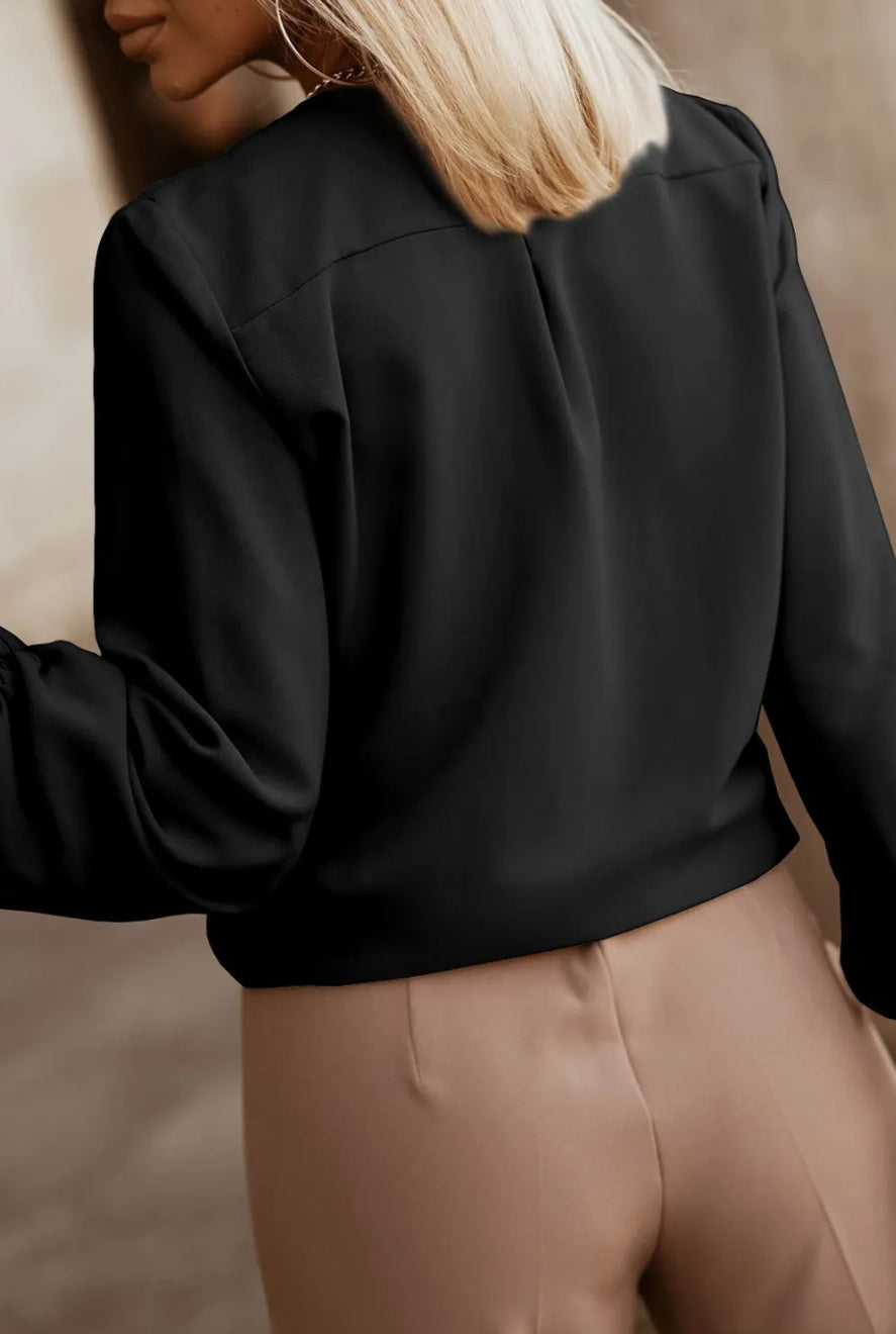 Black Crew Neck Gathered Stretch Cuff Shirt