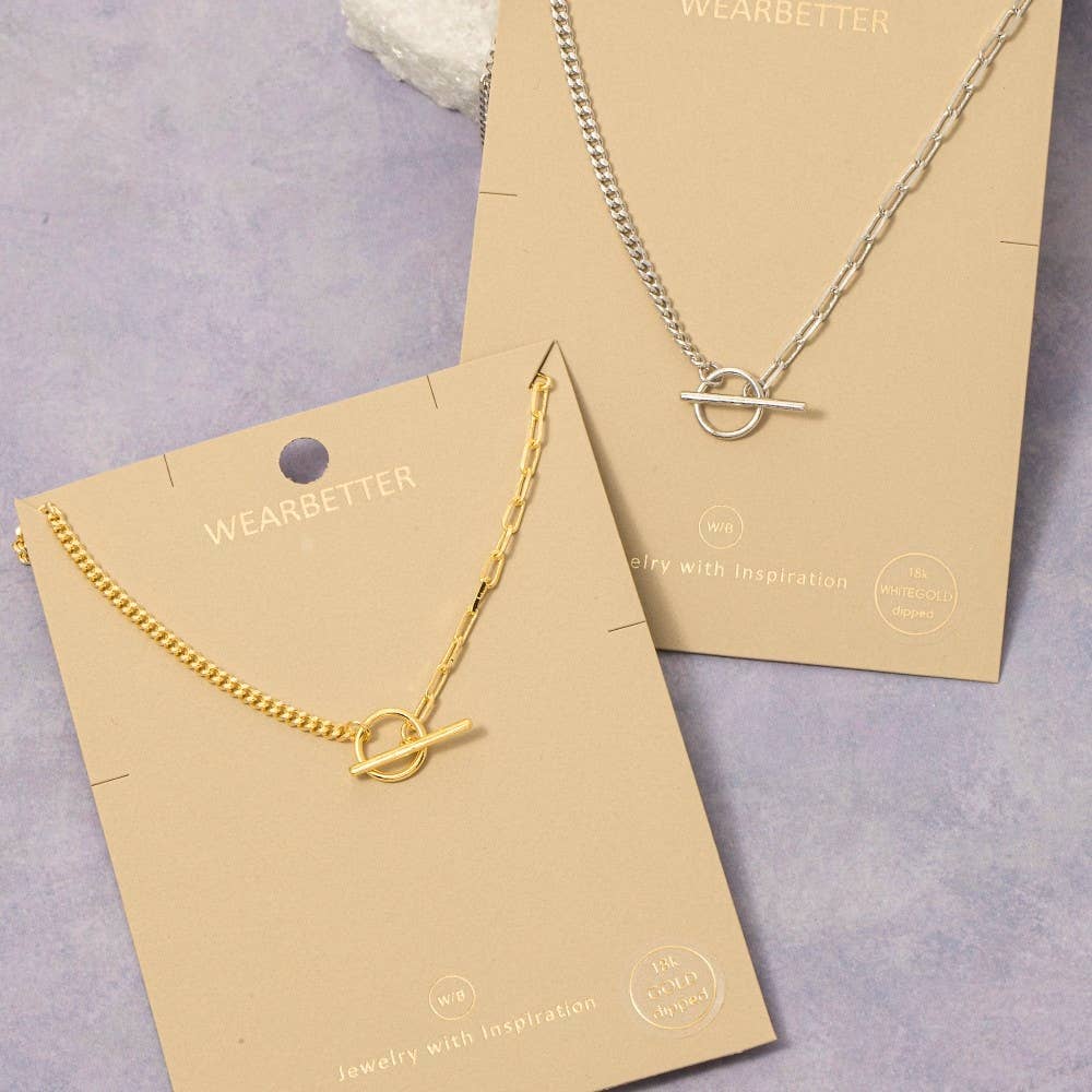 This necklace showcases a timeless toggle chain y style. Witness the transformative power of accessories as this piece effortlessly redefines your fashion narrative.