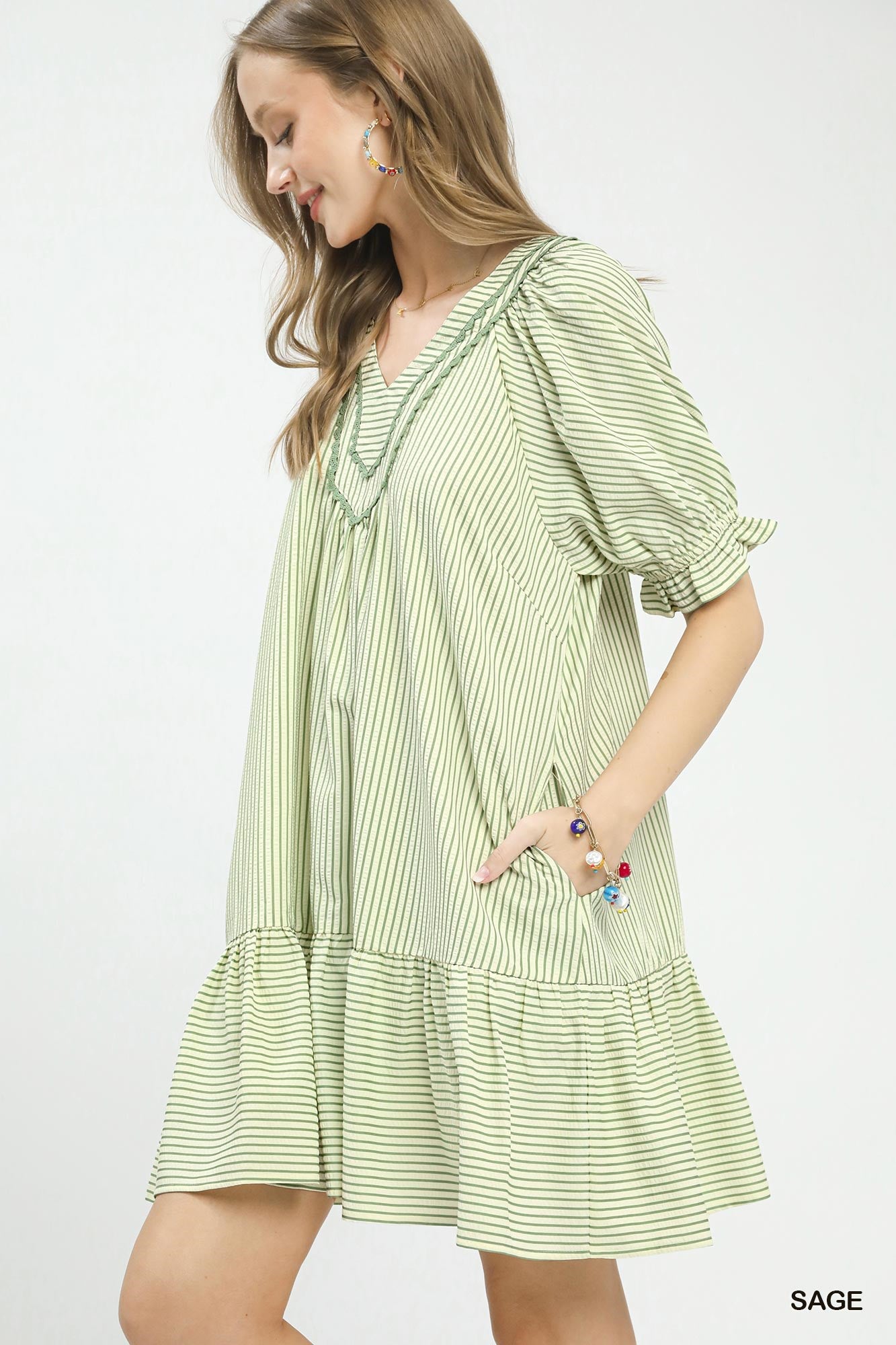Striped Babydoll Mini Dress