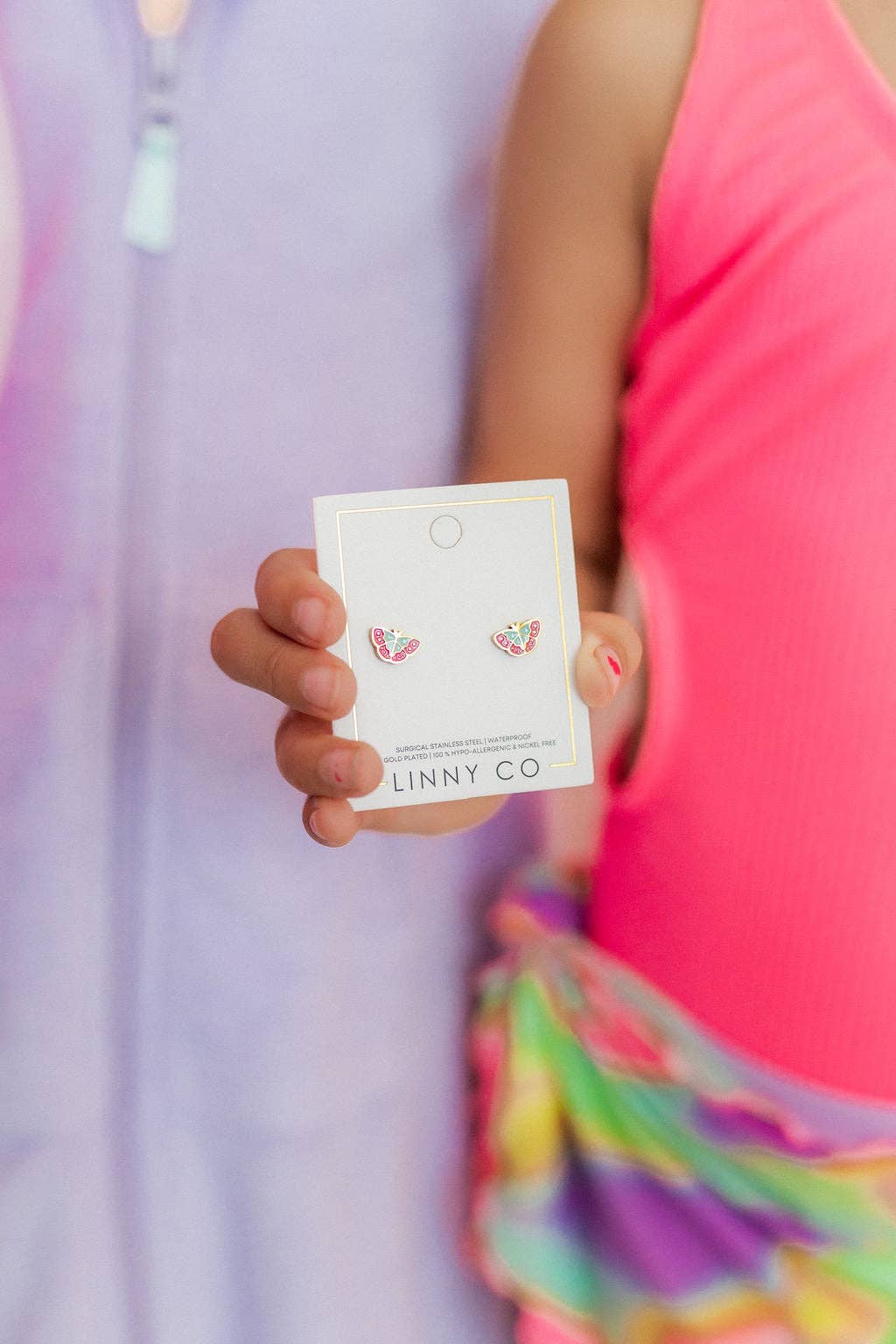 Bring a burst of color to any outfit with the Glossy Pink and Blue Butterfly Screwback Stud Earrings. These fun and playful studs are perfect for sensitive ears, with a secure screwback design that ensures a snug fit throughout the day. The 8mm size makes them perfect for everyday wear. The glossy pink and blue enamel design features a beautiful butterfly shape, making these earrings a standout piece for any occasion. Whether you're dressing up for a special event, adding some flair to a casual outfit, or attending a family celebration, these studs are sure to shine. Where to Wear: * Brighten up a casual outfit for a day out with friends. * Perfect for adding a pop of color at a family gathering or school event. * Wear them to a birthday party or casual holiday celebration for an extra touch of charm. Features: * Glossy pink and blue butterfly design * 8mm size * Secure screwback design for all-day comfort * Waterproof, durable, and perfect for active wear