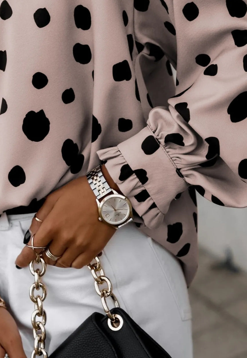 Pink Button Frill Cuffs Oversize Puff Sleeve Blouse