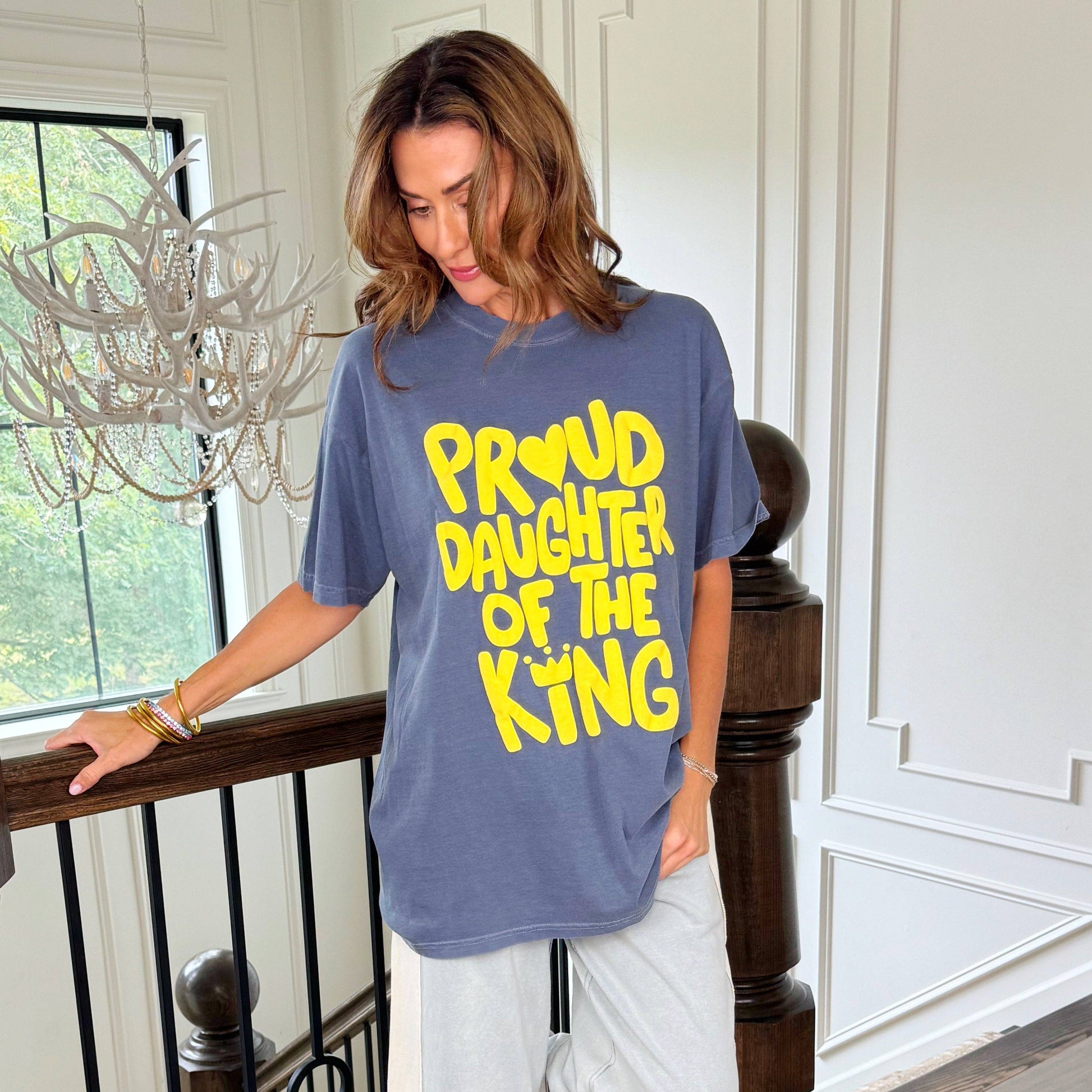 Celebrate your faith with the Proud Daughter Of The King Puff Tee. This soft, comfortable shirt features a stylish puff sleeve design, perfectly expressing your identity as a beloved child of God. Wear it with confidence and let your spirit shine through every moment.